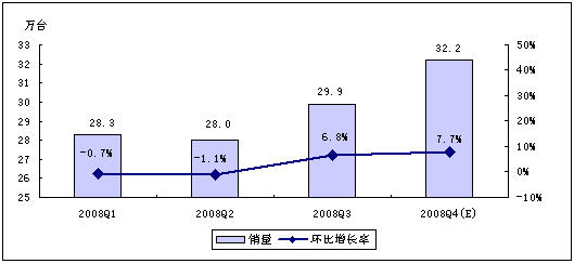 賽迪顧問預測,受全球經濟危機以及中國經濟發展趨緩等因素影響,2008年第四季度,MP3/PMP播放機行業將不會呈現快速增長的勢頭,但年終禮品市場的啟動,在一定程度上仍然會拉動整體市場向前發展。賽迪顧問預計,2008年第四季度,中國MP3/PMP播放機市場銷量為134.0萬臺,銷售額將達7.9億元。