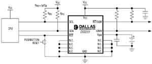 另外一種RTC經常使用的方法是測量基頻,對分頻鏈路進行加、減計數來調節計時頻率。這種方法無須額外的軟件開銷即可提高計時精度,但不能調節基頻。此外,這種方法也需要高精度測量振蕩頻率。以Maxim公司的RTC為例,它采用的方法是通過調節晶體的負載電容來調節晶體的振蕩頻率。這種方法可以補償基頻,有效提高計時精度和方波輸出時鐘的精度,二者工作在同一時鐘源。