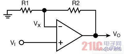 取決于負反饋分壓器中的R2/R1電阻比率。電阻器R1和R2分別消耗功率