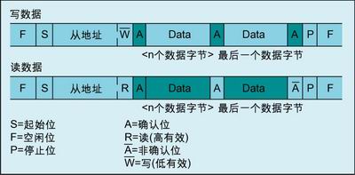 I2C允許多個主器件工作在同一總線上。多個主器件可以輕松同步其時鐘,因此所有主器件均采用同一時鐘進(jìn)行傳輸。多個主器件可以通過數(shù)據(jù)仲裁檢測哪一個主器件正在使用總線,從而避免數(shù)據(jù)破壞。由于 I2C總線只有兩條導(dǎo)線,因此新從器件只需接入總線即可,而無需附加邏輯。圖4 顯示了典型的 I2C總線讀/寫操作。