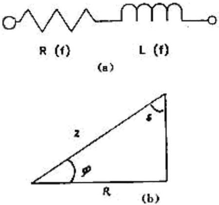 圖 4 鐵氧體抑制元件的等效電路 (a) 和阻抗矢量圖 (b)