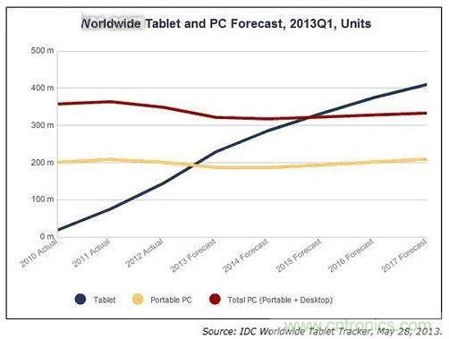 當前消費類電子產品的主要產品細分類型如下:配有3-5英寸屏幕的智能手機;5-8英寸的超級手機或平板手機;8-11.6英寸的平板電腦;11.6-15.6英寸的超極本;以及最大可達17英寸的筆記本電腦。在其5年的產品歷史中,平板電腦被認為是升溫最快的移動設備,根據預測,到2015年其銷量有望趕超個人電腦。因此,PC供應商開始將重心轉移至用戶界面友好的觸摸設計上,比如具有與筆記本電腦或平板電腦相同功能的可翻轉筆記本電腦。