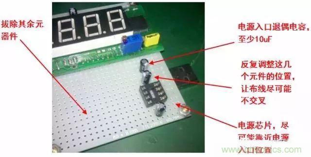 電源貫穿電路始終,合理的電源布局對簡化電路起到十分關(guān)鍵的作用。某些洞洞板布置有貫穿整塊板子的銅箔,應(yīng)將其用作電源線和地線;如果無此類銅箔,你也需要對電源線、地線的布局有個初步的規(guī)劃。