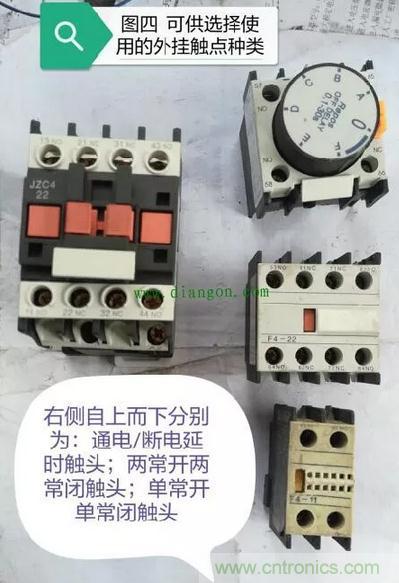 再來看由于該型繼電器只有兩對常開觸點和兩對常閉觸點,一旦出現觸點不夠情況時,難不成還要再安裝一只繼電器?其實在設計之初,這個問題就已經被考慮到。圖四就是該型繼電器所能加裝的“外掛”裝備: