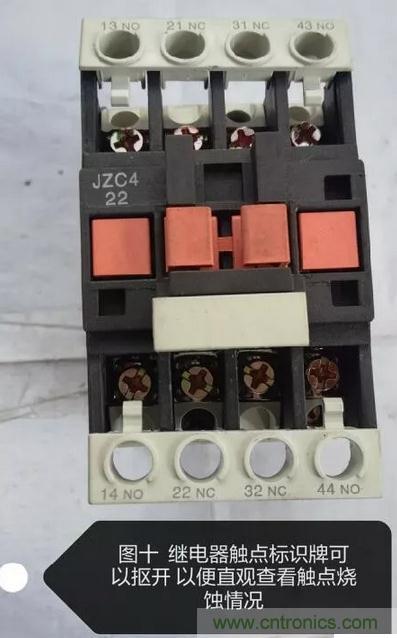 最后圖十所展示的是直接查看繼電器各觸點燒蝕情況的方法,該方法相較萬用表測量法,更為直觀: