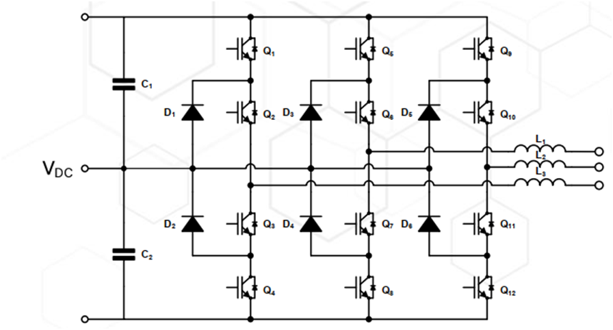 三電平I-NPC和三電平ANPC是電源轉換系統(PCS) 中常見的雙向拓撲結構, 可滿足輸出功率不斷增長的需求。 與兩電平拓撲相比, 三電平拓撲需要更多的元器件、 驅動信號以及更復雜的控制結構。 但其優勢也十分明顯:三電平結構能夠有效降低功率損耗和電流紋波(由于所承受電壓減半) , 并具有更好的抗電磁干擾(EMI) 性能。