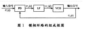 當輸入信號和輸出信號頻率相同相差恒定時,鑒相器輸出中的低頻分量為零,環路濾波器的輸出也為零,壓控振蕩器的振蕩頻率不發生變化。如果二者的頻率不一致,則鑒相器將產生低頻分量,并通過環路濾波器使壓空振蕩器的頻率發生變化。環路設計得恰當,這種變化將不斷使輸出信號的頻率與輸入信號的頻率趨于一致,最終二者頻率相等相位差恒定,Ud(t),Uc(t)均為直流電壓,VCO的輸出頻率將停止變化,環路處于“鎖定”狀態。當輸入信號的頻率發生變化時(VCO的控制范圍),VCO的輸出就能跟上這個變化,實施跟蹤和捕捉的過程,達到頻率相等的要求