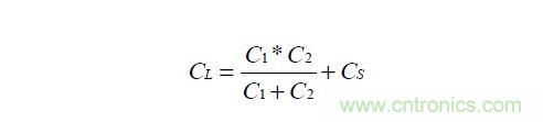 圖示的C1,C2就是為晶振工作在并聯(lián)諧振狀態(tài)下得到加載電容CL的電容。關于最優(yōu)的加載電容CL的計算公式為: