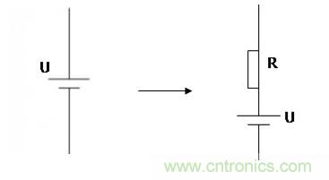 實際電路中,電源存在內阻,相當于串聯一個電阻,此時輸出電壓就會有所下降,對電路中的干擾不可忽略。