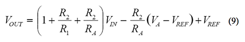 如果相對(duì)于原始等式中的 VREF 取 VOUT 和 VA,則可得到相同的結(jié)果。VA(MAX) – VREF 也應(yīng)替換等式(7)中的 VA(MAX)。