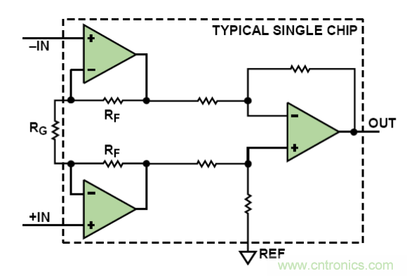 圖2 三運(yùn)放儀表放大器拓?fù)浣Y(jié)構(gòu)
