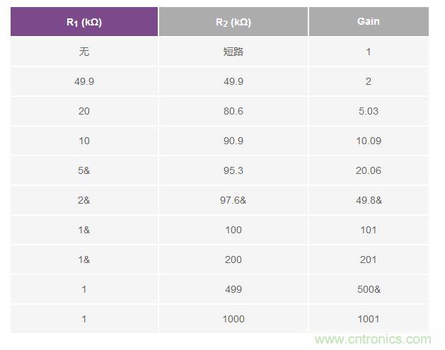 據(jù)等式(3),R1 與 R2 之比將增益設(shè)為:
