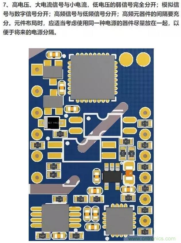 1、遵照“先大后小,先難后易”的布置原則,即重要的單元電路、核心元器件應當優先布局。這個和吃自助餐的道理是一樣的:自助餐胃口有限先挑喜歡的吃,PCB空間有限先挑重要的擺。