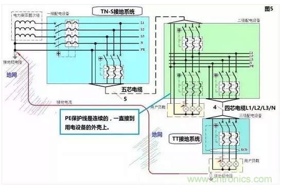 注意哦,圖2對應的接地系統叫做TN-C,而圖3對應的接地系統叫做TN-C-S。