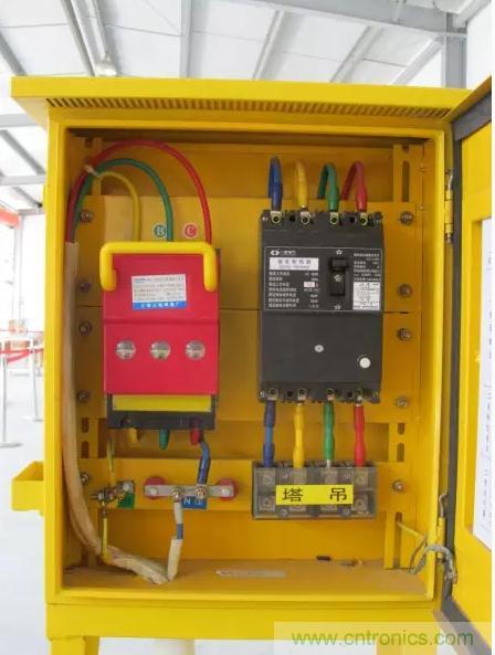 5、總配電箱的電器具備電源隔離,正常接通與分?jǐn)嚯娐罚约岸搪贰⑦^(guò)載、漏電保護(hù)功能。(JGJ46-2005第8.2.2條)