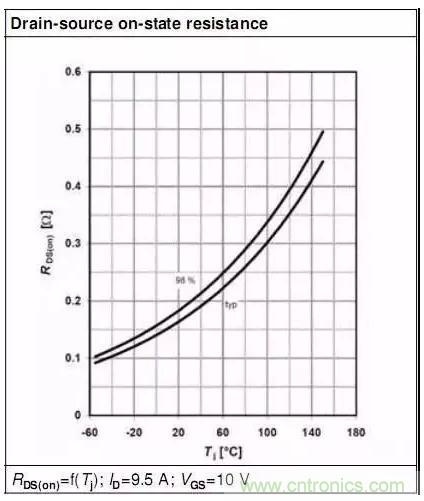 從MOSFET Rds(on)與Tj的圖表中可以看到:Tj增加Rds(on)增大,即Rds(on)是正溫度系數(shù),MOSFET的這一特性使得MOSFET易于并聯(lián)使用。