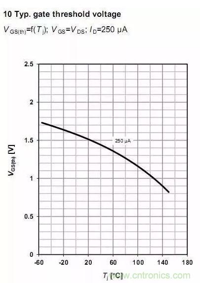 相信這個(gè)值大家都熟悉,但是Vgs(th)是負(fù)溫度系數(shù)有多少人知道,你知道嗎?(下面兩圖分別來自BSC010NE2LS和IPP075N15N3 G datasheet.)