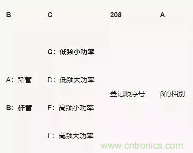 不同的國家/地區對三極管型號命名方式不同。還有很多廠家使用自己的命名方式。