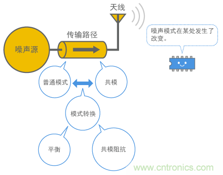 【導(dǎo)讀】在實際噪聲抑制措施中,噪聲源很少會直接連接到天線。很多情 況下,在普通模式中產(chǎn)生噪聲,然后被轉(zhuǎn)換為共模。之后,噪聲通過電子設(shè)備的接地傳輸,并通過電纜或屏蔽罩作為天線進行發(fā)射。因此,需要在噪聲傳輸路徑中考 慮普通模式到共模的轉(zhuǎn)換。