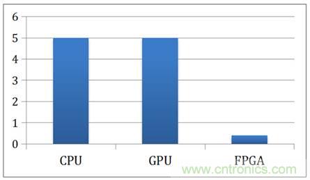 FPGA相對于CPU與GPU有明顯的能耗優(yōu)勢,主要有兩個原因。首先,在FPGA中沒有Instruction Fetch與Instruction Decode,在Intel的CPU里面,由于使用的是CISC架構(gòu),僅僅Decoder就占整個芯片能耗的50%;在GPU里面,F(xiàn)etch與Decode也消耗了10%~20%的能源。其次,F(xiàn)PGA的主頻比CPU與GPU低很多,通常CPU與GPU都在1GHz到3GHz之間,而FPGA的主頻一般在500MHz以下。如此大的頻率差使得FPGA消耗的能源遠(yuǎn)低于CPU與GPU。