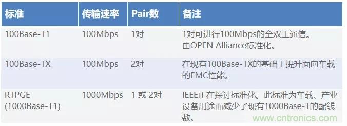 表2:車載Ethernet標準