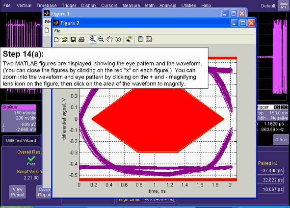 根據選擇好的測試項目,QualiPHY隨即展開一系列自動化測試過程:自動設置示波器工作參數包括采樣率、存儲深度、采集時間、縱軸刻度、觸發電平等;自動定義測量參數;自動調用第三方軟件如Matlab對波形運算,自動分析波形和測量結果,自動輸出分析結果,整個測試過程完全是自動化的,無需任何人工干預。在測試過程中會同步顯示測試狀態和過程提示。