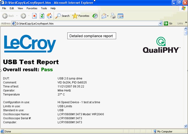圖7 QualiPHY軟件自動生成USB2.0一致性測試報告