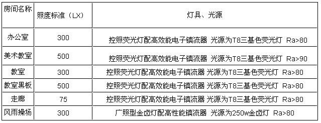 教學樓以教室、辦公室為主,以熒光燈為主要照明光源。