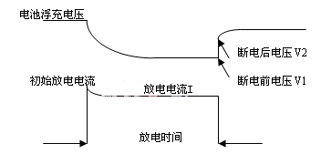 蓄電池在線內阻監測,通過電池向放電模塊瞬時放電,測量電池斷電瞬間的電壓差,計算電池內阻(R內阻=△V/I),內阻測試原理如圖3。由于在線監測中出現的端電壓監測誤差、放電過程電流波動、斷電前后電壓補捉測量技術,以及在線連接線電量衰檢等問題,內阻在線監測精度不高。目前,在國內美國ABLER便攜式內阻測試儀應用較多,它的在線式內阻測試系統測試精度與便攜式相比稍差,但與目前使用的其他產品相比還是要好些。