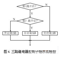 下面是系統中幾個子程序的流程圖:三路繼電器控制子程序流程圖如圖4。