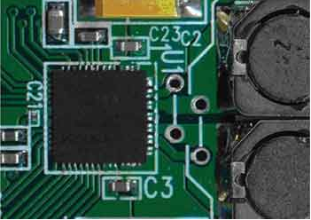 與裸露焊盤相接的敷銅塊應該用多個過孔連到PCB背面的其他敷銅塊上,并應該在滿足系統(tǒng)信號走線的要求下具有盡可能大的面積。加寬所有與器件的連線,這將有益于改善系統(tǒng)的散熱性能。雖然IC的引腳并不是主要的散熱通道,但實際應用中仍然會有少量發(fā)熱。圖3所示的PCB中,寬連線將D類放大器的輸出與圖右側(cè)的兩個電感相連。在這種情況下,電感的銅芯繞線也可為D類放大器提供額外的散熱通道。雖然對整體熱性能的改善不到10%,但這樣的改善卻會給系統(tǒng)帶來兩種截然不同的結(jié)果—系統(tǒng)具備較理想的散熱或出現(xiàn)較嚴重的發(fā)熱。