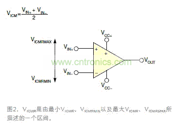 其中,VICMRMIN是相對(duì)VCC-電壓軌的極限值,VICMRMAX是相對(duì)于VCC+電壓軌的極限值(圖2)。
