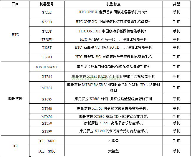HTC將攜帶他們在MWC2012上推出的最新四核機(jī)皇ONE X系列參展;摩托羅拉將帶來8款最熱門的智能手機(jī),從XT910 MAXX無窮電量的“肥刀”到最新的刀鋒V“彩刀”以及最新三防手機(jī)DEFY都有真機(jī)展出;