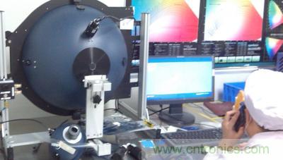 圖2:美國藍菲光學(Labsphere)的積分球(左)用于晶科電子(廣州)有限公司的研發中