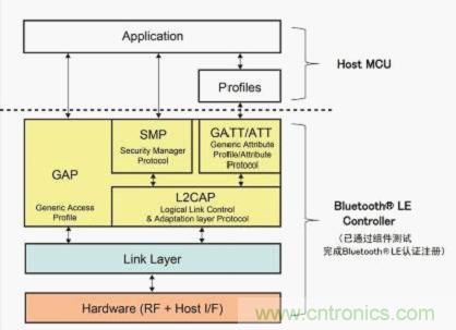 圖2:主機和Bluetooth® LE控制器堆棧結(jié)構(gòu)