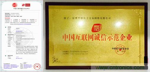 【導讀】近日,華強電子網及旗下平臺華強安防網雙箭齊發,獲得由國家工信部、商務部、國資委、發改委認證的“中國電子商務誠信龍頭單位”和“中國互聯網誠信示范單位”兩項國家級資質榮譽。