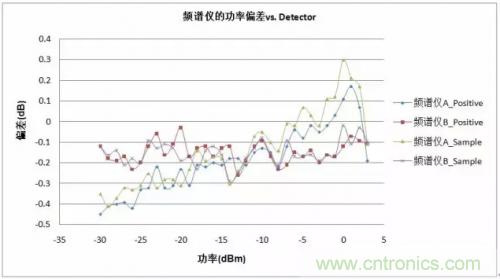 從測(cè)試結(jié)果我們發(fā)現(xiàn),在Positive和Sample這二種Detector條件下,對(duì)于連續(xù)波信號(hào)的測(cè)試,二臺(tái)頻譜分析儀的幅度誤差變化甚微,而對(duì)于調(diào)制信號(hào),還需要類似的測(cè)試來進(jìn)一步驗(yàn)證。