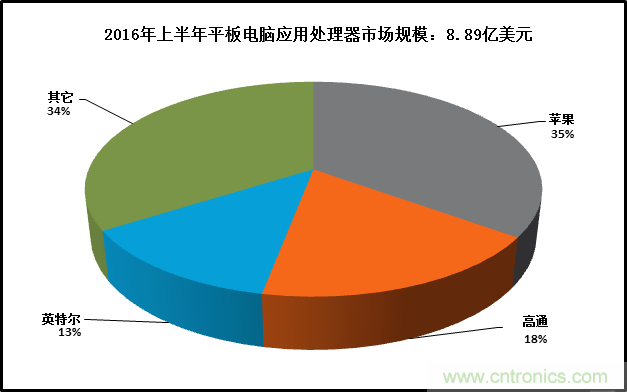 Strategy Analytics的研究指出,蘋果、高通、英特爾、聯(lián)發(fā)科和三星LSI收益份額在2016年上半年雄踞平板電腦應用處理器市場的前五名。蘋果憑借35%的收益份額位居第一;高通以18%的收益份額緊隨其后,收益份額占13%的英特爾排名第三。