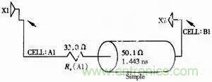 圖中分別標(biāo)出了匹配電阻是0Ω、33Ω、100Ω時(shí)接收端的信號(hào)波形。從波形看出,0Ω時(shí)波形有很大的上沖和下沖現(xiàn)象,信號(hào)最差;100Ω時(shí)信號(hào)衰減較大,方波幾乎變成了正弦波;而匹配電阻是33Ω時(shí)波形較好。理想的匹配電阻值,可以利用軟件的terminatorWizard工具,自動(dòng)根據(jù)器件的參數(shù)模型算出最佳匹配電阻為33.6Ω,實(shí)際應(yīng)用中可以選用33Ω。利用仿真和器件的IBIS模型,可以很精確地知道匹配電阻值的大小,從而使信號(hào)完整性具有可控性。