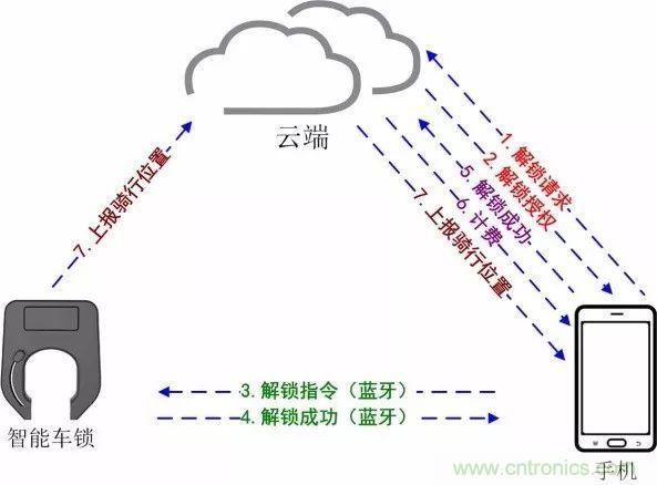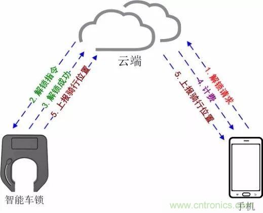 共享單車應(yīng)用,其實(shí)就是通過“單車-云端-用戶手機(jī)”之間的信息傳遞來完成的,其中最關(guān)鍵的是解閉智能鎖的過程。目前,最新的“GPS定位+藍(lán)牙”解鎖和還車模式已經(jīng)比較普遍。