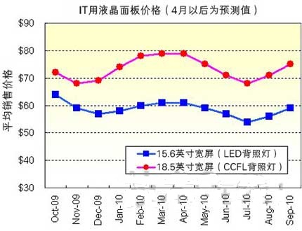 圖1:IT用液晶面板價格走勢(4月以后為預測值)