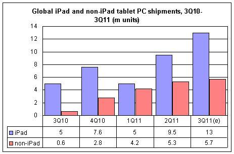 • 非iPad平板電腦第三季度銷量環比僅增長10.1%