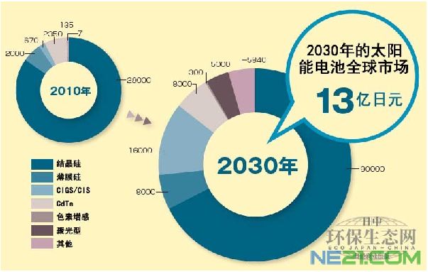 全球太陽(yáng)能電池市場(chǎng)到2030年將達(dá)到13.314萬(wàn)億日元,擴(kuò)大到2010年的4倍左右。