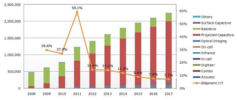 - 智能手機(jī)迅猛增長(zhǎng)帶動(dòng)觸摸面板市場(chǎng)迅速擴(kuò)大