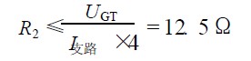該電路由VT1、R2、R3 組成,VT1采用Motoro2la公司的MCR729210 (UDRM = 800 V,控制極觸發(fā)電壓UGT = 0. 8 V,觸發(fā)電流IGT = 10 mA) .R2 為單向晶閘管提供觸發(fā)偏置電壓,其阻值的選擇至關重要,如果值太大,則電路中某些不穩(wěn)定因素導致LED中的電流瞬間變大,會導致晶閘管頻繁觸發(fā),保護電路頻繁起作用,造成電路工作不正常;如果阻值選的過小, LED可能在超出其規(guī)格穩(wěn)定值下工作,保護電路不靈敏,會造成LED壽命縮短。因要求LED支路電流為16 mA,則: