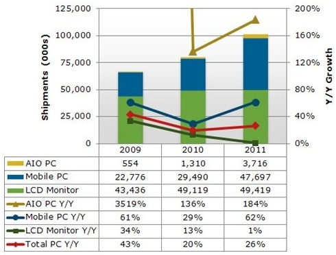 根據NPD DisplaySearch最新發布的中國電腦出貨和預測報告Quarterly China PC Shipment and Forecast Report指出,Mobile PC推動中國電腦市場快速成長,Mobile PC包括筆記本電腦、上網本和平板電腦。2011年下半年電腦總出貨量達5千340萬臺,較上半年增長了12.7%。中國是全球最大的臺式電腦市場和顯示器市場(包括監視器和一體機顯示器),是全球第三大平板電腦市場以及第四大筆記本電腦和上網本市場。 就整個電腦市場而言,中國全球排名第三,北美和EMEA市場排在前兩位。