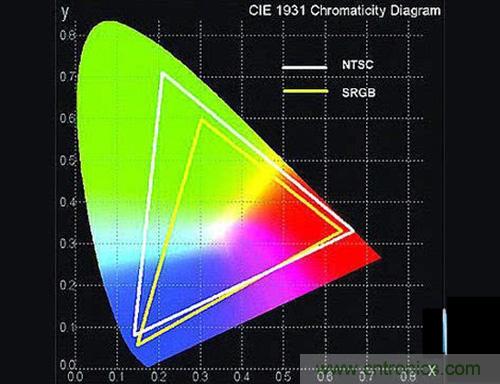 但實際上,sRGB是個很窄的色彩范圍(真的要怪微軟),所以除了sRGB以外,還有類似Adobe RGB、ProPhoto RGB(傳說中的色彩空間之王)、NTSC之類的色彩空間。如今在廠商宣傳中被用得比較多的是NTSC色彩空間,它的范圍比sRGB廣了很多,一般可以說sRGB的色彩范圍僅有NTSC的72%(所以魅族才說魅藍Note屏幕覆蓋72%NTSC)。