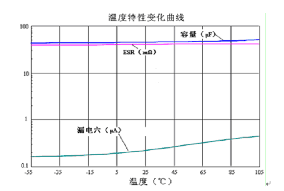 4. 溫度特性穩定,如圖1所示在-55~+105℃工作溫度范圍內,容量、ESR變化幅度小。