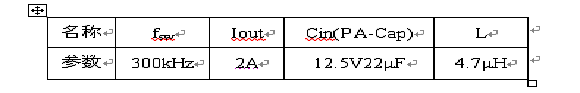 表1. 開關電源測試電路參數