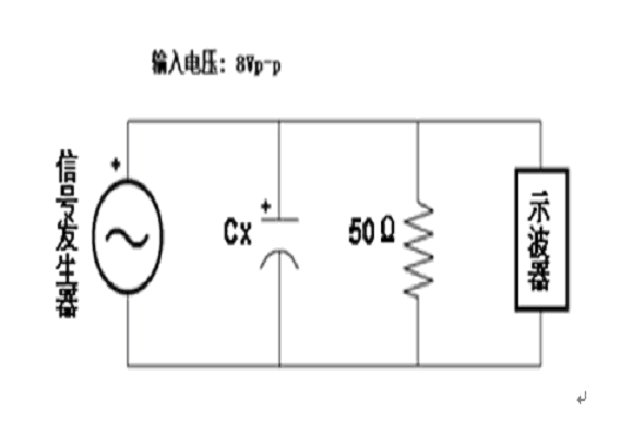 由于電子產品的工作電壓不斷地降低,而其功耗卻在增大, 這就要求DC/DC轉換器具有輸出電壓低和輸出電流高等特點。作為DC/DC轉換器或開關電源輸出電容,要求在開關管的工作頻率附近具有較低的紋波電壓。為了觀察PA-Cap在開關管一般工作頻率下的紋波電壓效果,進行了如圖3所示的測試,其中的參數示于表1中。